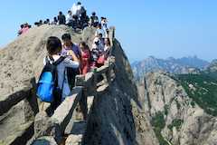 八達嶺長城エリア範囲内の慕田峪長城(ぼでんよく)も混雑がましで人気。軌道地下鉄2号線「前門」⇒北京旅游前門集散中心から専用バス(所要1.5時間。8-10時に不定期。帰り便は14-16時)。