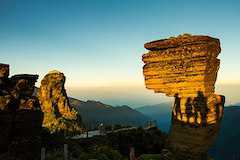 貴州省の梵浄山は、武陵山脈の主峰で、最高点の鳳凰山の標高は約2,572mにも及びます。大規模な原生林があり、ウンピョウなど多くの貴重な動植物が生息していて、特にキシュウシシバナザル(キンシコウ)やハンカチノキはこのエリアでしか見られません。中国十仏教名山の1つであり、弥勒菩薩の聖地としても有名です。