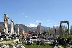 サルディス遺跡は、イズミルの近郊バスのオトガルからサリフリ行きバスでサルト下車後、徒歩15分。そこからビン・テペの墳墓群へはタクシーか車で。バスは不明。