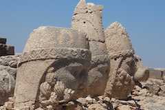 トルコ南東部の「ネムルットダー/ネムルトダーゥ」は、紀元前1世紀のコンマゲネ王国の王アンティオコス1世が建造させた、巨大像が並ぶ墳墓の一部ともいわれています。巨大な首は地震で落とされてるが、ゼウス、アポロン、ヘラクレスと並んだアンティオコス1世は神格化されてたのかも。