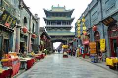 山西省の平遥古城は、古くから栄えた城郭都市です。城壁は明の洪武3年(1370年)に築かれました。明代から清代末期まで晋商とよばれる山西商人の拠点で、為替業務で栄えた中国の金融中心地でした。しかし辛亥革命後は没落していき、再開発もできずに古い町並みが残されました。