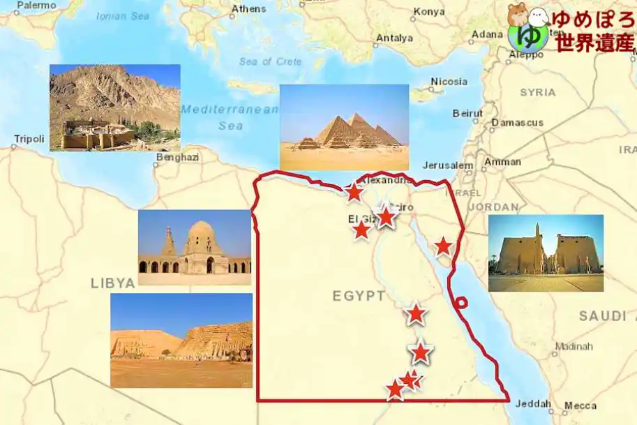 2026エジプト世界遺産地図と全7件一覧/公共交通行き方(候補/動画)
