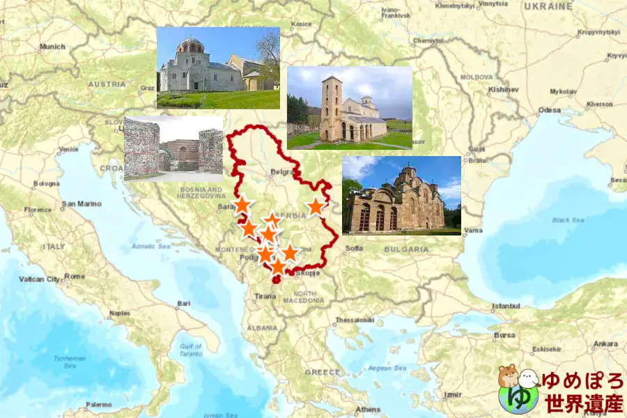 2026セルビア世界遺産地図と全5件一覧/公共交通行き方(候補/動画)
